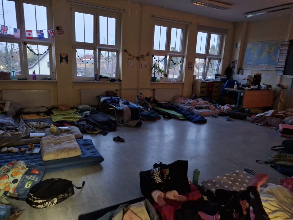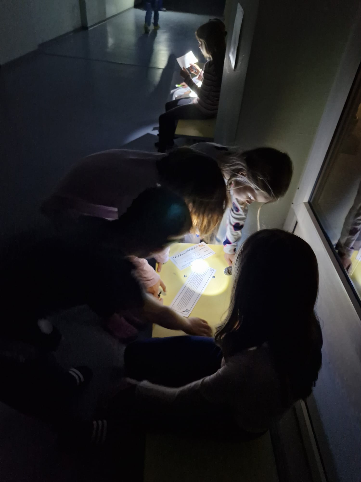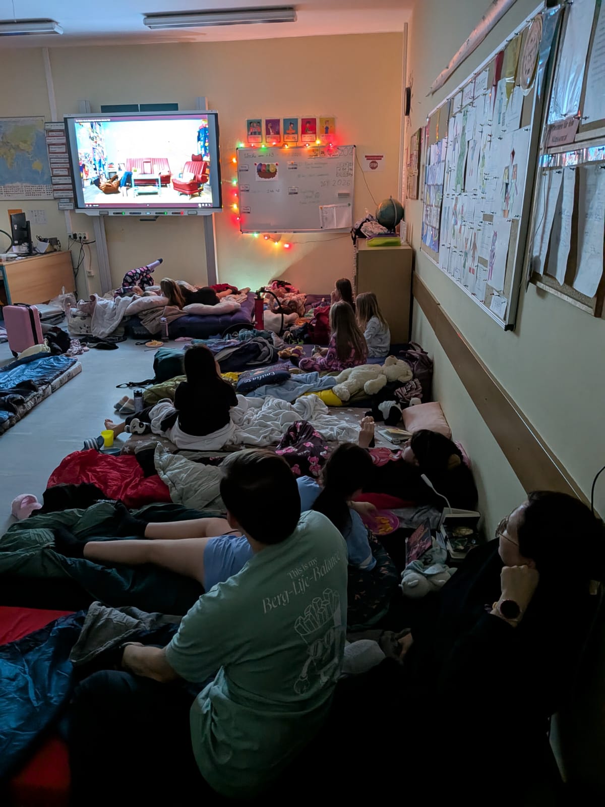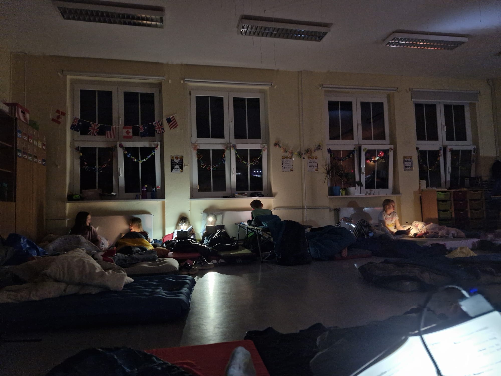 Unsere Lesenacht begann, als wir um 18 Uhr die Betten aufgebaut haben. Danach sind manche im Raum geblieben und manche haben die Schule im Dunkeln durchstreift und angeschaut. Als wir zusammen Abendbrot gegessen haben (es gab Hotdogs), war es sehr laut, aber auch sehr lecker. Nach dem Abendbrot haben wir eine Lesespurgeschichte im dunklen Schulflur durchgeführt. Dann haben wir „Checker Tobi & der Bücher-Check“ geschaut und dabei Chips, Gummibärchen und andere Sachen genascht. Als das Video vorbei war, haben wir uns gegenseitig unsere Bücher vorgestellt und dann gelesen. Vier oder fünf Kinder sind lange wach geblieben und hatten sehr wenig Schlaf. Ein Kind hat sogar geschlafwandelt! Am nächsten Tag haben wir gefrühstückt, Pailletten-Eier geschmückt und draußen einen Spaziergang mit Ostersuche gemacht. Es war sehr toll.
